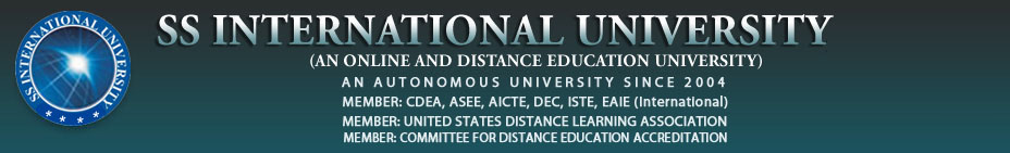 SS International University is an Autonomous University since 2000 and an Online & Distance Education University since 2004, which has got MEMBERSHIPS: US Distance Learning Association (USDLA), Committee for Distance Education Accreditation (CDEA), International Accreditation Organization for Online Universities (IAAOU), The Universal Council for Online Education Accreditation (UCOEA), Institute of Electronics & Electrical Engineers (IEEE-Applied), AIMS-ATMA, BMAT-AAMERD, INDIA, International Society for Technical Education (ISTE-Applied), KVQA, Norsk Akkrediering MSYS 007 and an ISO:9001:2008. We are one of the leading Online and Distance Education Universities catering to the educational needs of thousands of working adults and students through a comprehensive Certificate/Diploma/Bachelor/Master/M.Phill/Ph.D Certification programme in all major disciplines. SS International University (SSIU) offers a truly diverse range of majors under its various Certification programmes, allowing you to get recognition for your life long learning (experience) without attending regular classes and studying by means of Off-campus centers. All the majors and courses we offer are frequently REVIEWED and new majors are constantly being added in order to reflect the ever expanding range of professional fields in today’s world.